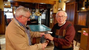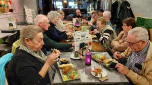 Op donderdag 16 oktober werd de laatste fietstocht van het seizoen 2025 gefietst. Deze laatste tocht van 30 kilometer met 15 deelnemers, startte niet om 13.00 uur maar om 11.00 uur en ging door de Somerense gemeente met een pauze in de bossen bij het gat van Roels. Hierna fietsten wij via Lierop naar de Dijkstraat in Asten waar Hendrik bij Jan van Hoek een heerlijke lunch voor ons had geregeld. Tijdens ons eerste drankje bedankte Nico, Hendrik voor zijn jarenlange inzet om de 30 kilometer tochten uit te zetten. Hij kreeg een mooi ludiek cadeau van Nico aangeboden, en kreeg een daverend applaus van de aanwezigen. Het was namelijk voor de laatste keer dat Hendrik de 30 kilometer tocht had uitgezet. Hendrik heeft dit 8 jaar lang met veel plezier en inzet gedaan, dat wil zeggen dat Hendrik zo’n 50 tochten heeft uitgezet. Hendrik nam dit destijds over van Jan van de Laar en Anny Lemmen, nu neemt Jan Hoeben deze taak over van Hendrik. Wij wensen Jan Hoeben heel veel succes en hopen op net zo mooie tochten zoals wij die kennen. Hendrik namens alle fietsers hartstikke bedankt het ware mooie tochten, wij hebben ervan genoten, en heel veel plezier mogen beleven tijdens deze fietstochten. Hierna kwam al het lekkere eten op tafel en genoten hier enorm van. Na nog enkele consumpties genuttigd te hebben zijn wij weer naar huis gefietst, en waren wij dit jaar iets eerder thuis dan wij gewoon waren. Iedereen die dit seizoen heeft meegefietst bedankt voor de gezelligheid, rust alle goed uit zodat wij in het nieuwe seizoen er weer met z’n alle vele en veilige kilometers kunnen maken.